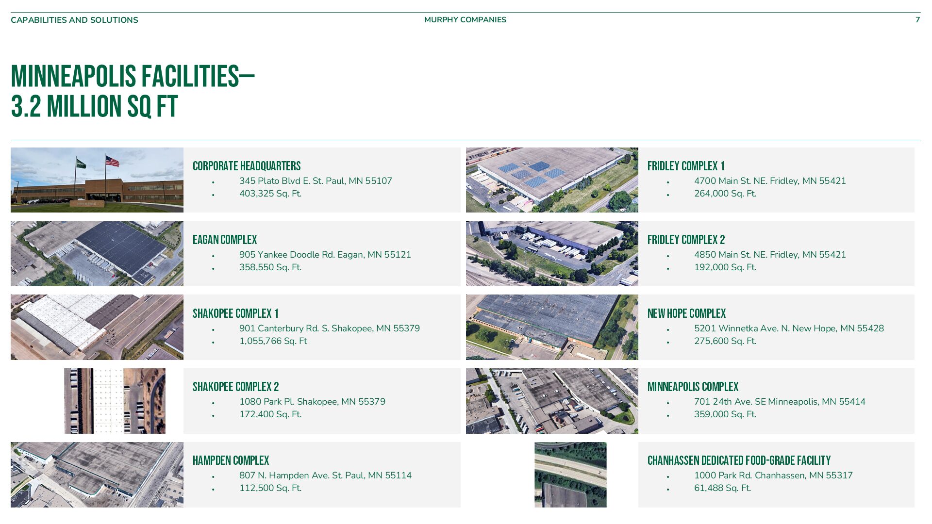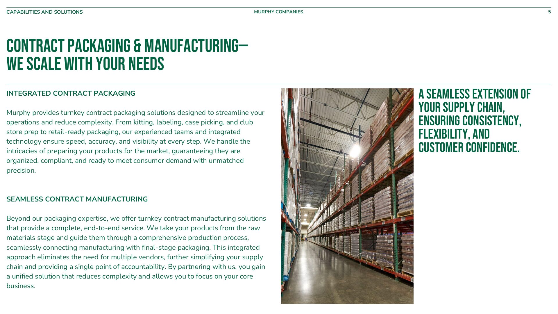 packaging/manufacturing services across a 5M+ sq. ft. network of rail-served, food-grade, and